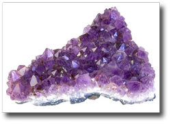 Healing Properties of Crystals - AMETHYST - In the crystal healing circles amethyst is also known as a "Master Healing Crystal". Amethyst clears and purifies assisting with stress and tension, it soothes and calms the mind, raises the spirit and protects from negative vibrations. Amethyst provides protection and balance during transition periods. It reduces the feeling of being victimized, giving you a spiritual perspective on life's circumstances. Amethyst is a powerful healing gem with diverse healing properties. It promotes intuitive and inspired thought. The lavender-pink color amethyst relates to the Heart chakra, to open and lighten up a betrayed heart and to heal the sense of loss of life and innocence. The blue-red color amethyst promotes a deep spiritual connection between one's self and one's life challenges, supporting the challenge one has taken on, giving patience and calmness despite overwhelming odds. The Chevron Amethyst (banded white and purple) helps peel off old karmic patterns to promote self-love and the ability to get along with others especially with one's Soul Mate or family members.